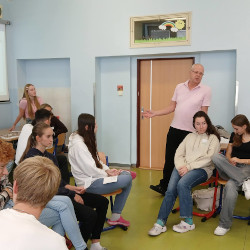 Workshop s panem Březinou proběhl ve všech třídách nižšího gymnázia. Byl pro žáky velmi zajímavý, moc hezky vedený s cílem kriticky přistupovat k informacím v médiích. Vyslanci EP