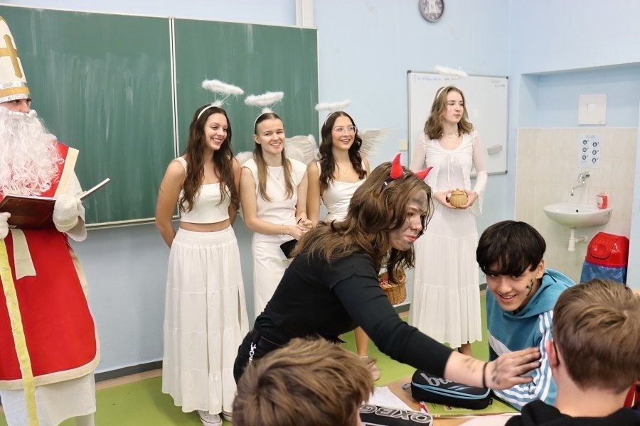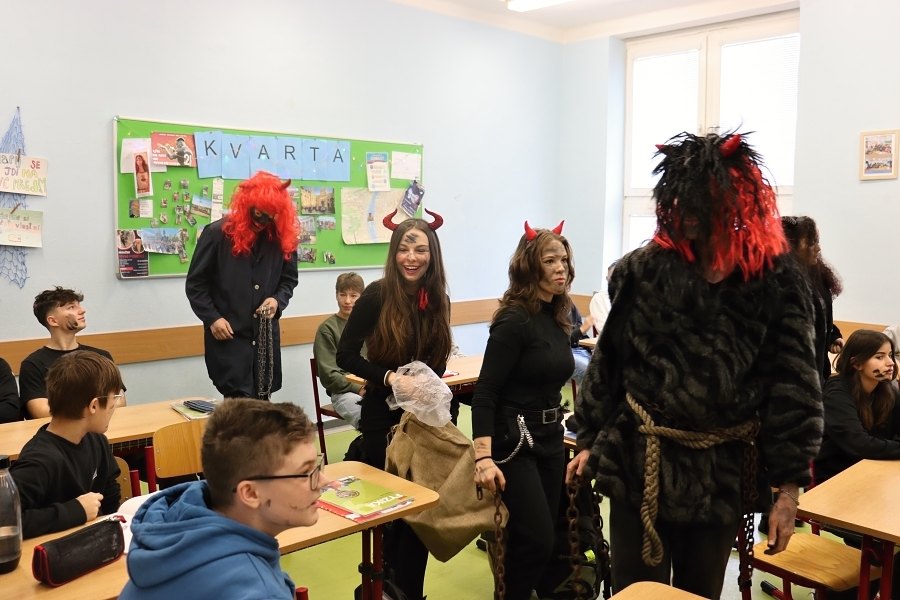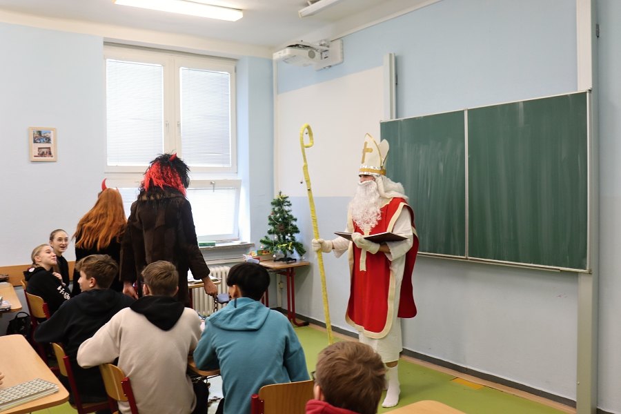I naši školu tento čtvrtek navštívil Mikuláš a přivedl s sebou mnoho čertů a andělů.