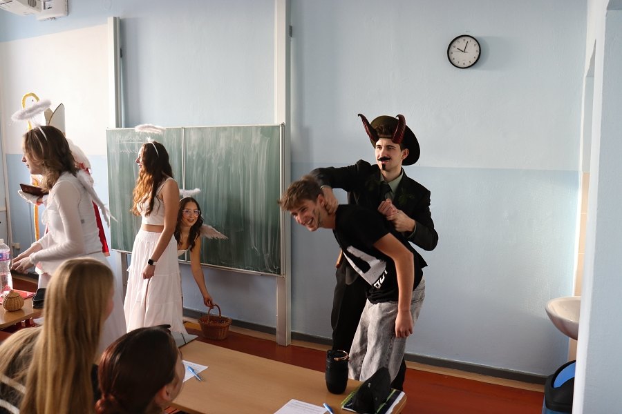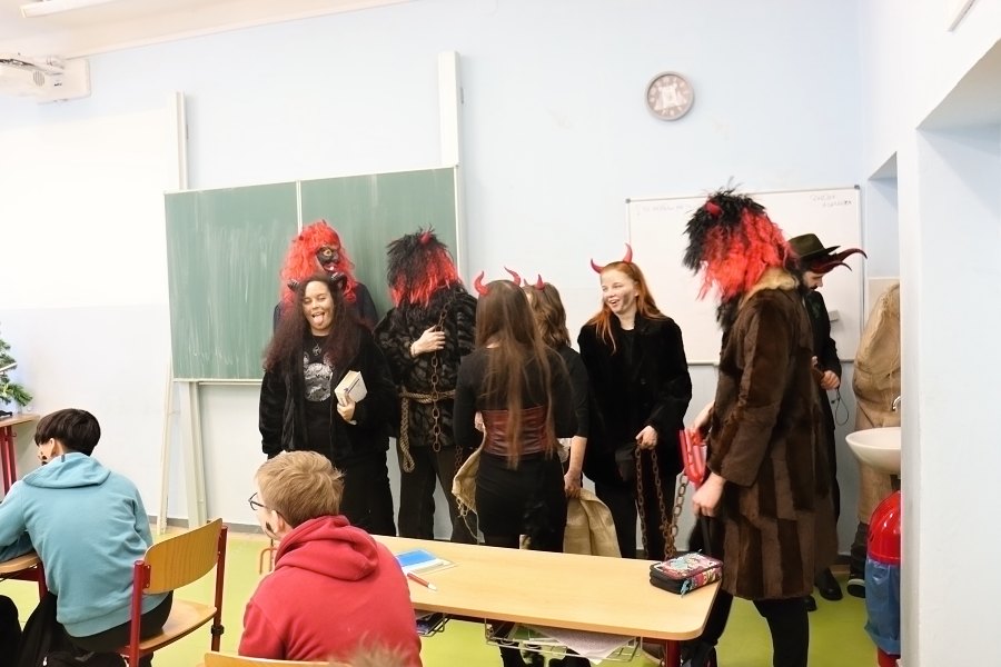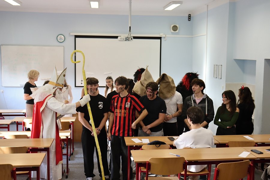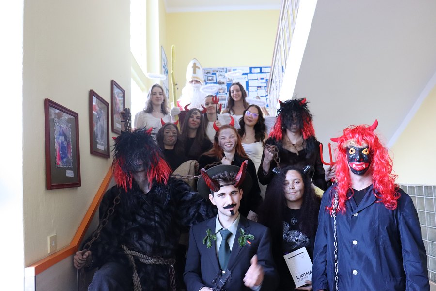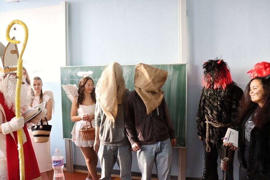 Ti první sice naplnili pekelné pytle několika zlobivci, ti druzí ale hlásili, že hodných žáků je na karvinském gymnáziu většina, a rozdali proto všechny své dobroty. Mikuláš si v každé třídě vyslechl veselou písničku a spokojeně se pak i se svou družinou vydal na dalekou zpáteční cestu.