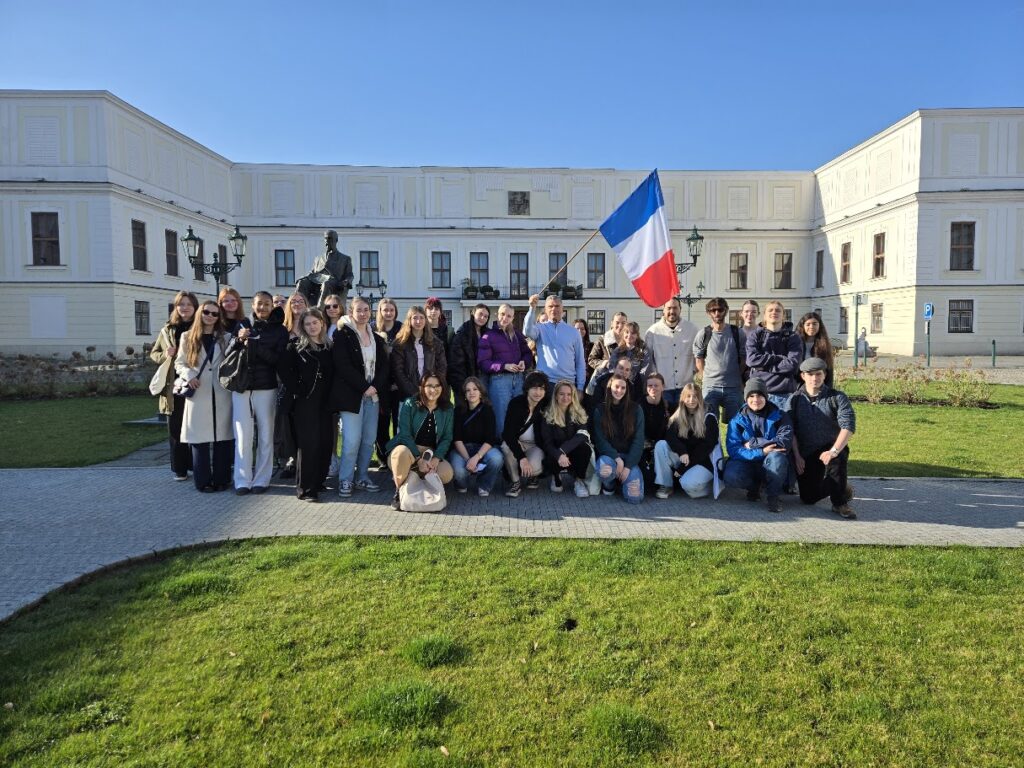 V rámci Týdne s Erasmem navštívila naši školu a naše město skupina studentů z lycea Sacré Coeur z francouzského města Tourcoing (sever Francie). Jednalo se o reciproční návštěvu poté, co na podzim 2024 cestovali naši studenti právě tam, do rodin svých francouzských korespondentů – zkráceně corres.