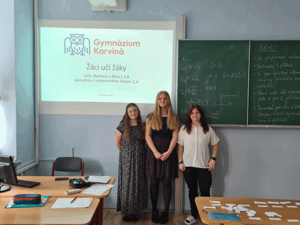 Proměna učitelského povolání je aktuálním společenským tématem. Učitel by měl být žákovi partnerem, mentorem, průvodcem. Na Gymnáziu Karviná si uvědomujeme, že práce učitele není možná bez spolupráce žáků. Učitelé a žáci jsou partneři a mají společnou cestu a cíl – a tím je poznání světa. Nabídli jsme žákům, aby se stali, alespoň na chvíli, učiteli. V týdnu od 19. do 28. března proběhl projekt Žáci učí žáky. Ten je založen na filosofii vrstevnického učení. Podstata spočívá v tom, že se jedinec lépe ztotožní s někým, kdo je mu blízký věkově či zájmy.