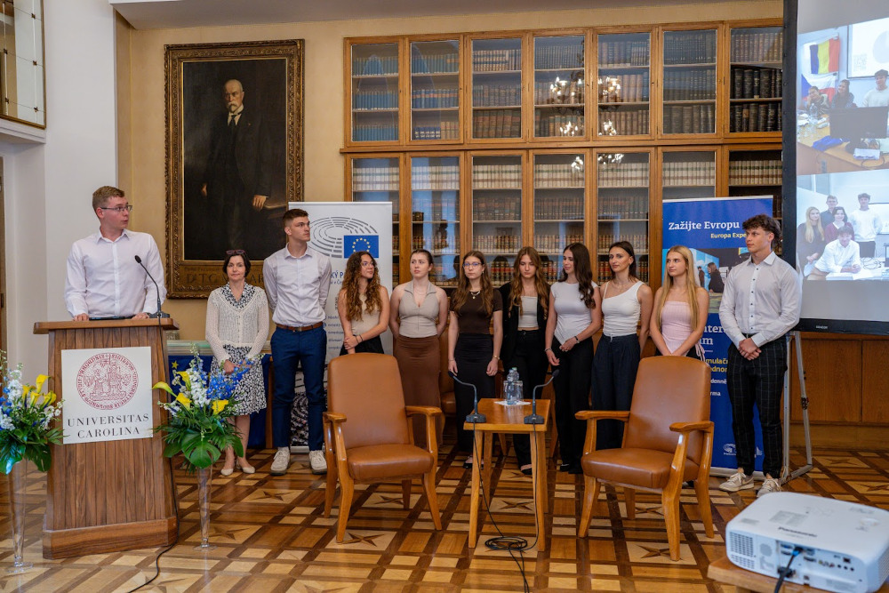 Dne 6. 6. 2025 jsme se v Praze zúčastnili závěrečné ceremonie a vyhlášení vítězů projektu „Školy – vyslanci Evropského parlamentu“. Vyslanci naší školy si přijeli pro krásné druhé místo. Programu, jehož cílem je šířit povědomí o Evropské unii a evropské parlamentní demokracii mezi mladými lidmi prostřednictvím poskytování aktuálních a praktických vědomostí, se žáci aktivně účastnili od prosince 2024 do května 2025. Jejich úkolem bylo v pravidelných měsíčních intervalech vytvářet takové aktivity pro ostatní žáky i učitele, aby se zamysleli nad tím, jak ovlivňuje EU naše životy, jaké výhody, ale i povinnosti nám členství v EU přináší, jaké to bylo předtím, než jsme do Unie vstoupili, a jaké to bude za 10 nebo 20 let.