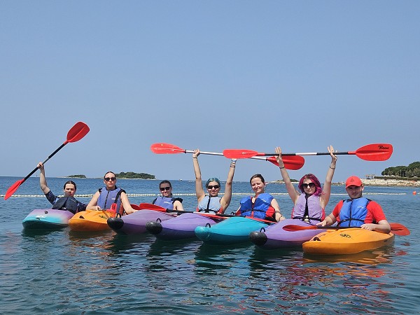 Když jsme po dlouhé cestě přijeli na místo, viděla jsem krásné, křišťálové moře, obrovské kamenité pláže a slunce, kterému neunikl jediný kout. Oblékla jsem si tedy plavky s úmyslem se opalovat. Dokážete si asi představit mé překvapení, když jsem se místo toho ocitla v bazénu a cvičila aquaerobik podle paní Heš. Samozřejmě jde o pouhou nadsázku, která má ukázat, že jsme celý pobyt nestrávili pouze ležením u moře (i když toho bylo taky dost). Hráli jsme volejbal, cvičili za zvuku uklidňující hudby nebo se učili nové sporty, jako je např. pickleball. Dokonce jsme měli i vlastní olympijské hry.