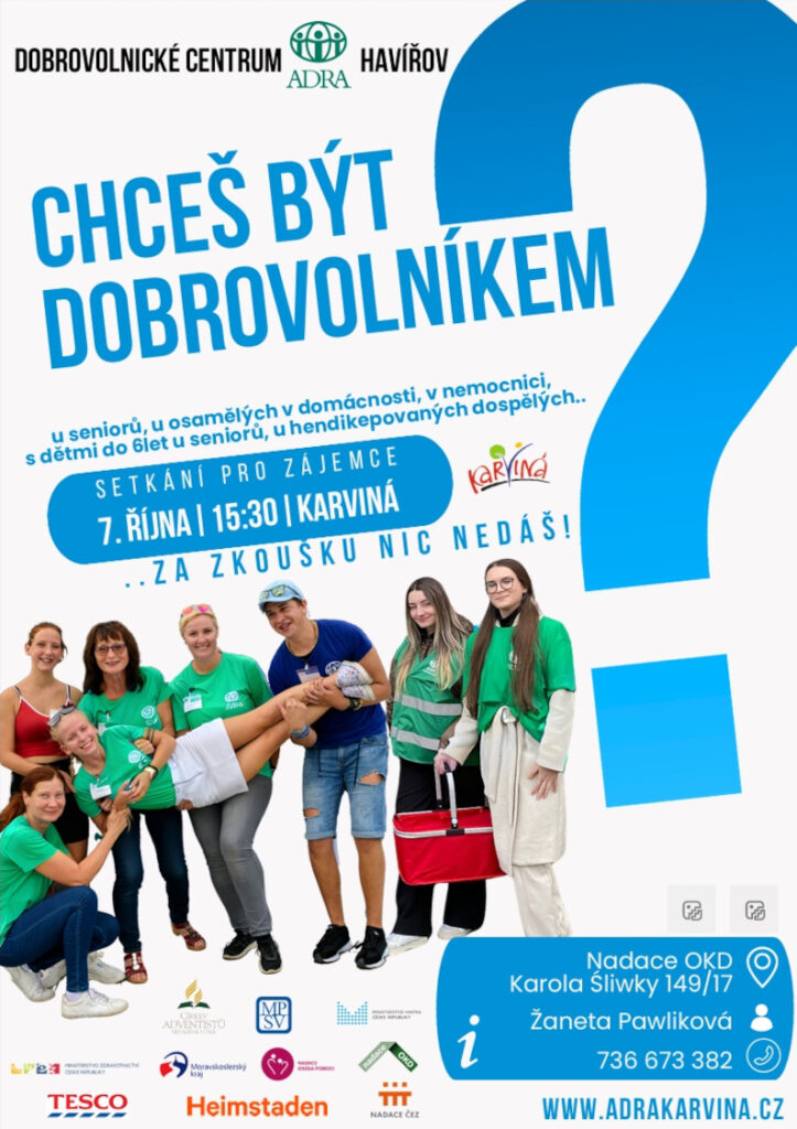 Chceš být dobrovolníkem? Publikováno 26. 9. 2025 · Změněno 26. 9. 2025 M. Ševčík za Dobrovolnické centrum ADRA Havířov.