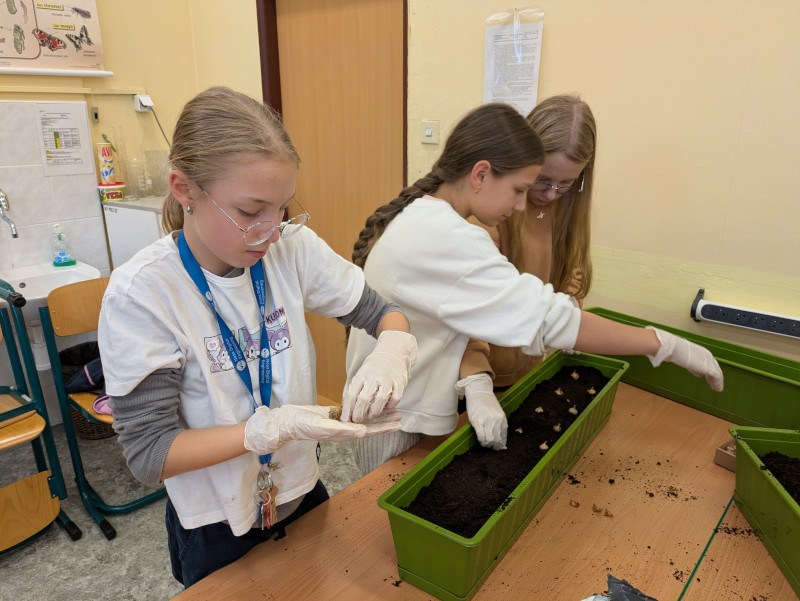 V letošním roce se naše škola zapojila do projektu Krokus, který organizuje Židovské muzeum v Praze. V rámci tohoto projektu zasadili členové našeho environmentálního kroužku GLOBE sazeničky žlutých krokusů, které nám mají připomenout 1,5 milionů dětských obětí Holokaustu. Krokusy jsme umístili do chladné místnosti tak, aby vykvetly až začátkem roku 2026, kdy si připomeneme Mezinárodní den památky obětí Holokaustu (27. ledna). Následně je chceme umístit ve třídách. Tato akce je součástí programu připomínky obětí Holokaustu a boje za lidská práva, který na naší škole v tomto školním roce pořádáme.