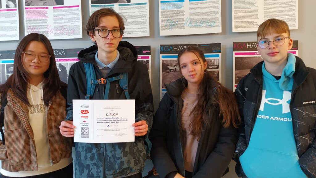 V pátek 21. 11. 2025 se naši kvartáni a terciáni zapojili do mezinárodní matematické soutěže Náboj Junior. Soutěžilo se na 17 místech naší republiky a v 7 zemích EU. Cílem soutěžících bylo v časovém limitu vypočítat co nejvíce příkladů. V průběhu dvou hodin se našemu týmu podařilo úspěšně vyřešit 26 příkladů. Naši školu velmi úspěšně reprezentovali Pham Khan Linh, Antonín Kycik, Tomáš Krůl a Barbora Ciosková.