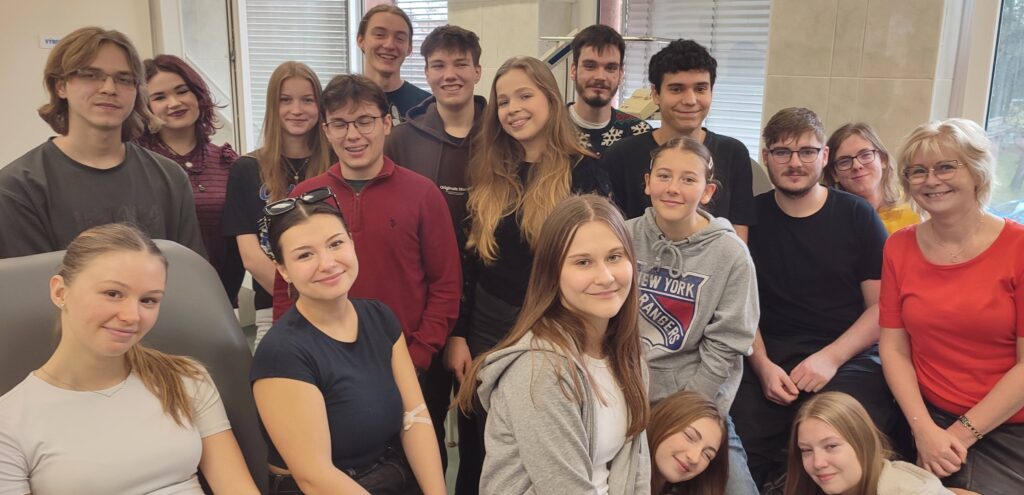 Tento týden se u nás opět potvrdilo, že maturanti nejsou jen odborníky na taháky, pozdní příchody a ranní kávu, ale také na odvahu a pomoc druhým. Tradiční akce darování krve v Nemocnici v Karviné-Ráji přilákala řadu odvážlivců, kteří se rozhodli stát se prvodárci krve. A to chce kus kuráže.
