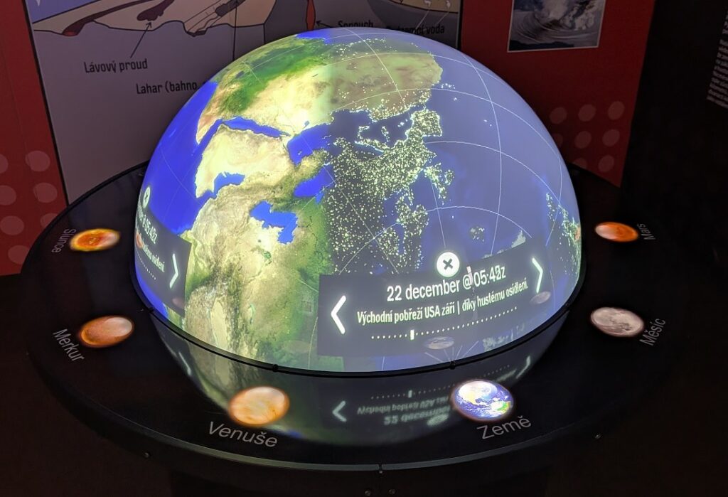 Kromě samotné projekce na kopuli Planetária byly k vidění i zajímavé exponáty v předsálí.